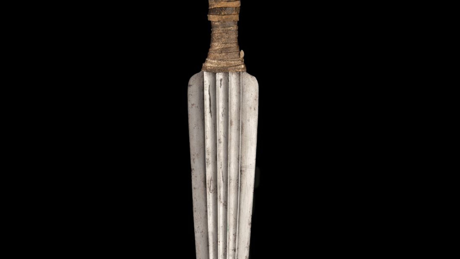 Tlingit representative Naakil.aan Hans Chester and Objects Conservator Megan Salas examine a steel dagger as part of the grant in March, 2022. (Photo/ Rick Wicker)