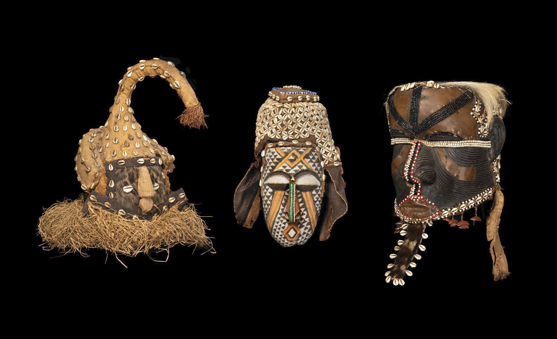 Staff re-discovered an important collection of Kuba masks, including beautiful examples of three royal Kuba masks, known as mwaashmboy , ngaady a mwaash , and bwoom masks. Often interpreted as representing three siblings, these masks tell the Kuba kingdom’s creation in the central Democratic Republic of the Congo, and were usually performed during initiation ceremonies for young men. The mwaashmboy represents the son of the god who came to earth to start the kingdom; the ngaady a mwaash represents his sister (and wife), who is the epitome of femininity and motherhood. The lines curving down from the ngaady a mwaash eyes indicated she is crying tears of joy and pain that symbolize womanhood. Their brother, bwoom, creates conflict by trying to win his sister’s love and overthrow his brother. These three Kuba masks are beautifully decorative, excellent examples of Central African artistry.