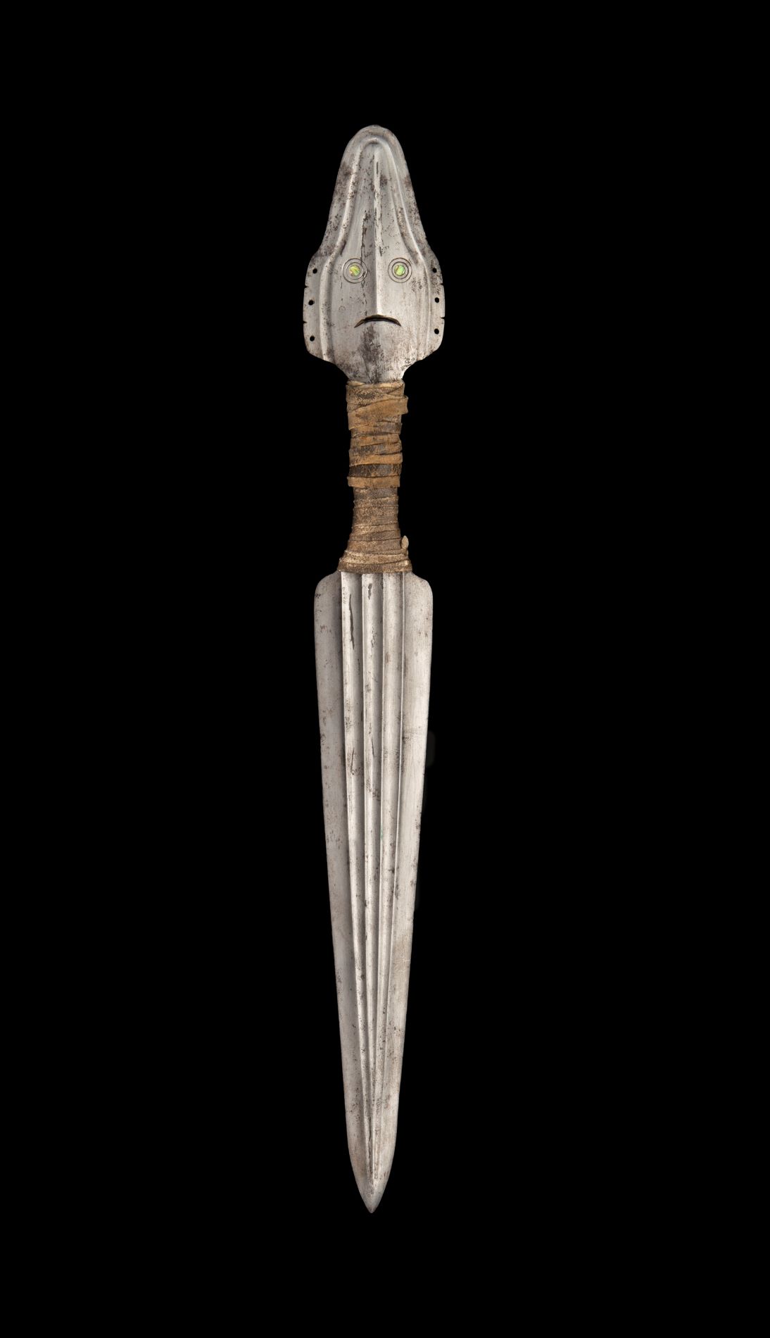 Tlingit representative Naakil.aan Hans Chester and Objects Conservator Megan Salas examine a steel dagger as part of the grant in March, 2022. (Photo/ Rick Wicker)